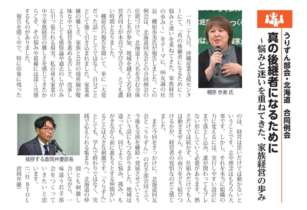 うりずん部会・北海道合同例会のご報告 報告者:(有)友誠 社長 棚原歩美 氏