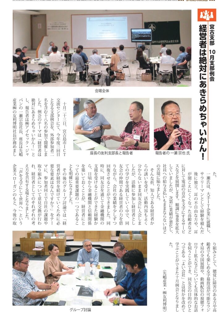 宮古支部10月支部例会のご報告 報告者:(株)アイセック・ジャパン 社長 一瀬宗也 氏