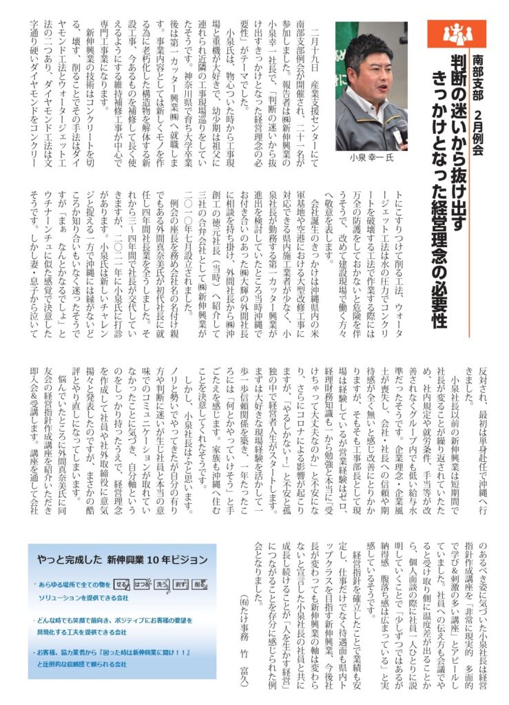南部支部2月支部例会のご報告 報告者:(株)新伸興業 社長 小泉幸一 氏
